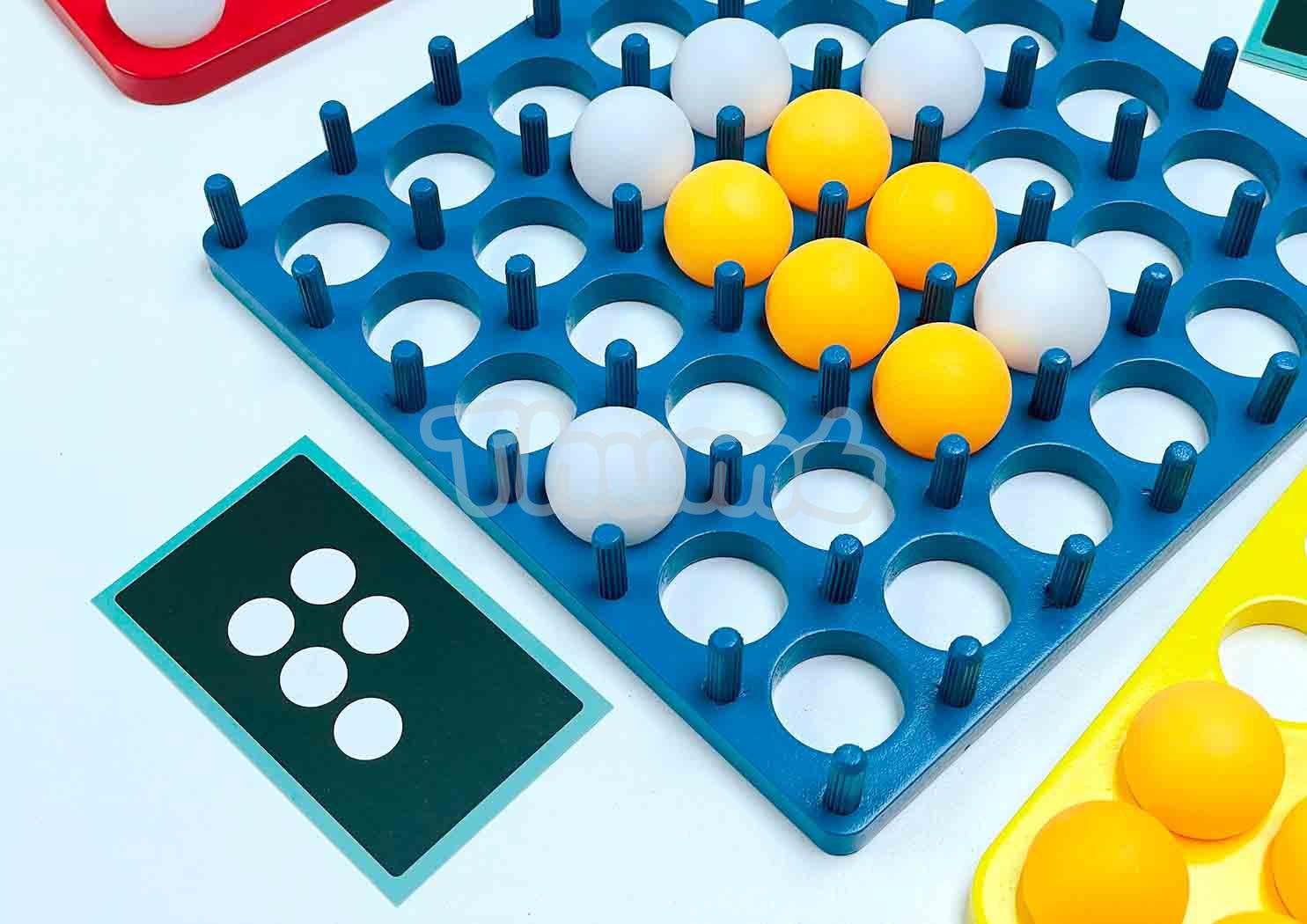 • 把球彈入棋盤中,拼出卡牌上的圖案